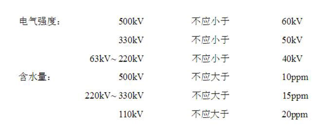 一、进行气体置换前,变压器油经净化处理,注入变压器的油应符合下列要求: