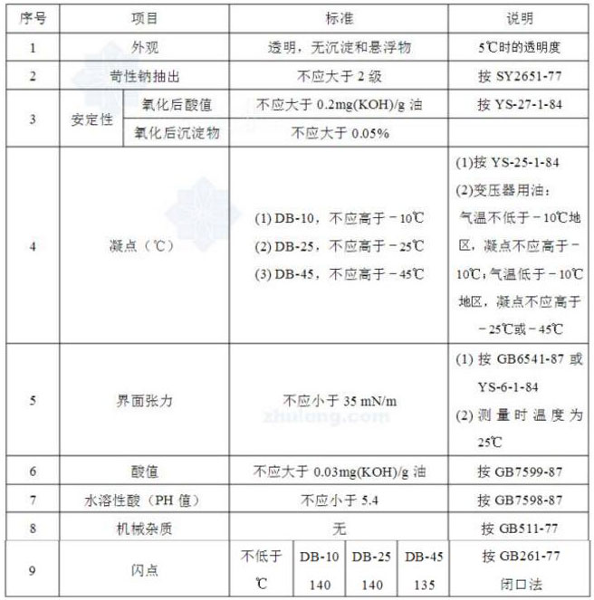 1、绝缘油的试验项目及标准,应符合表19.0.1的规定。